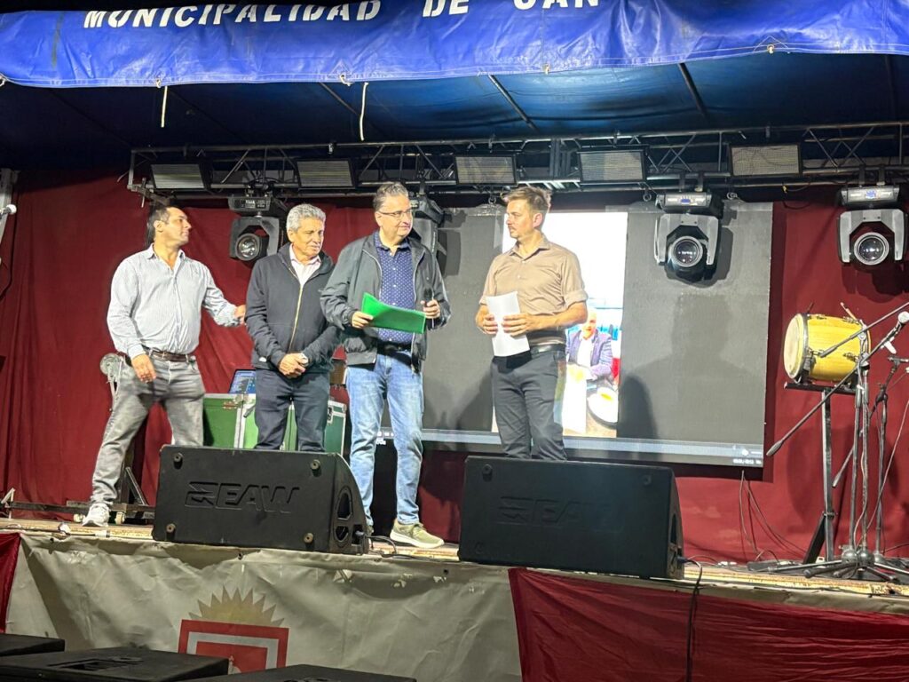 El sábado por la noche en el acto inaugural nos visitó Gustavo Brandan, ministro de Cooperativas y Mutuales, y entregó un aporte de $12.683.616 de parte del gobierno de Córdoba. Además anunció que cómo ha avanzado la obra de asfalto que tanto espera San Pedro Norte y ya está en proceso de licitación.