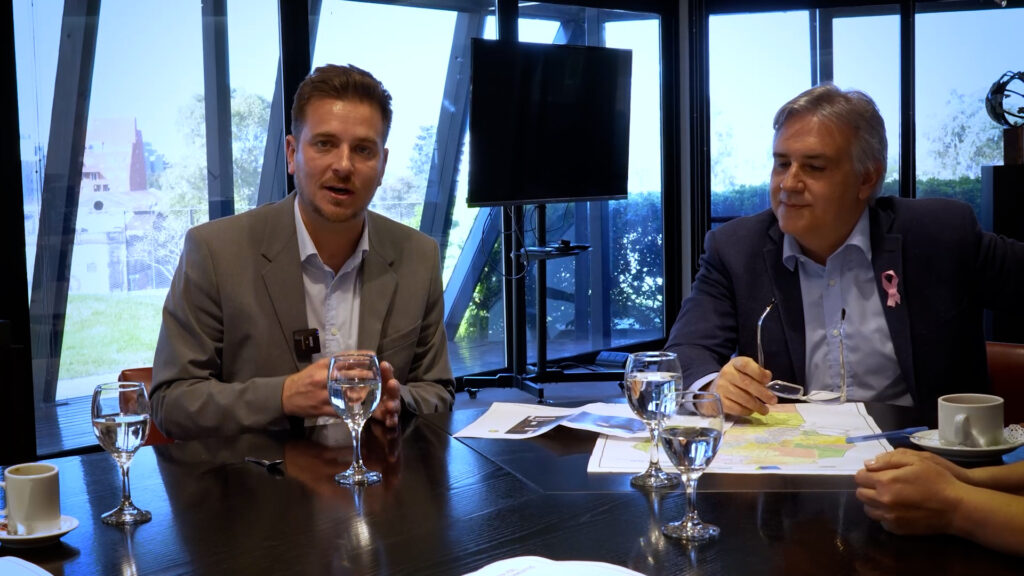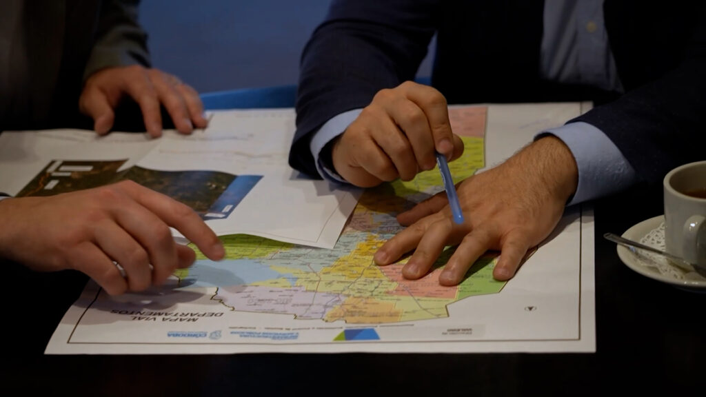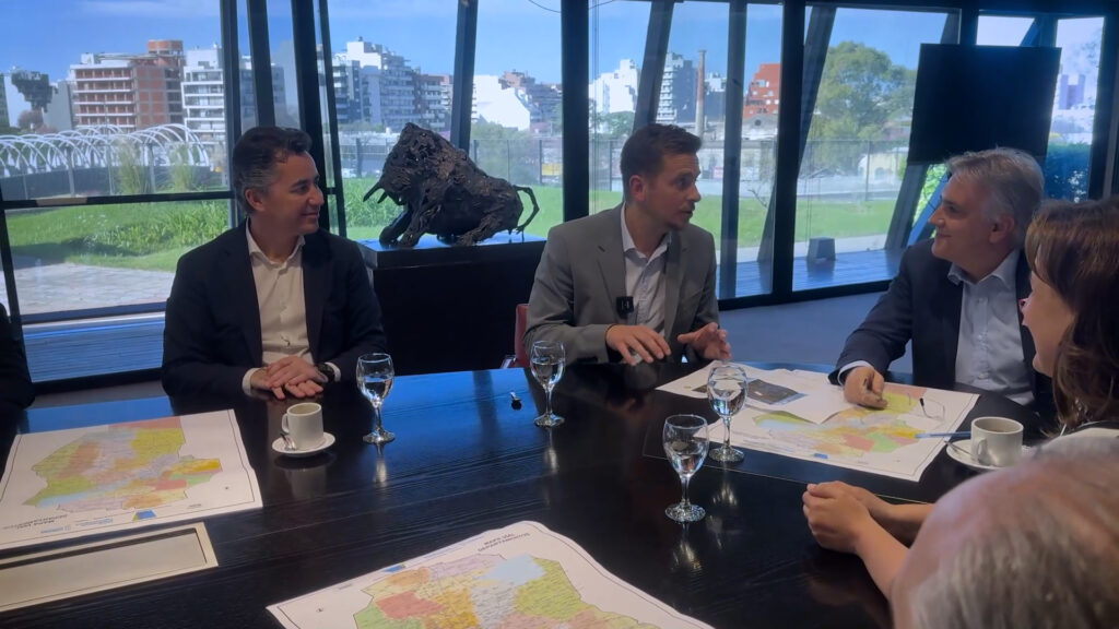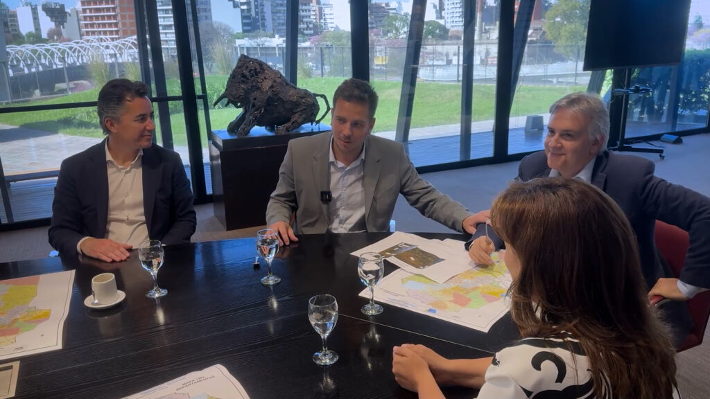 La reunión fue en la Casa de Gobierno de Córdoba. Participaron Llaryora, la vicegobernadora Myrian Prunotto, el ministro de Gobierno Manuel Calvo, el ministro de Obras Públicas Fabián López y el director de Vialidad Provincial, Martín Gutiérrez. El ambiente fue de entusiasmo y compromiso con el progreso.